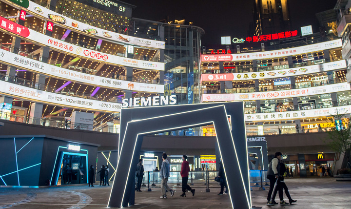 市民在武漢光谷廣場逛街(4月2日攝)。新華社發(fā)(伍志尊攝)