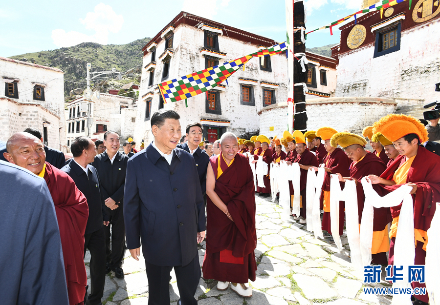 7月21日至23日,中共中央總書記、國(guó)家主席、中央軍委主席習(xí)近平來到西藏,祝賀西藏和平解放70周年,看望慰問西藏各族干部群眾。這是22日下午,習(xí)近平在位于拉薩西郊的哲蚌寺考察。 新華社記者 謝環(huán)馳 攝