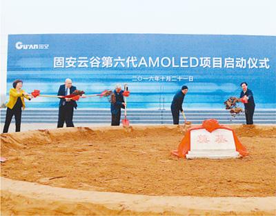 固安云谷第六代AMOLED項目總投資262億元,計劃于2018年6月投產(chǎn),設(shè)計每月投片能力為3萬片。圖為項目啟動現(xiàn)場。資料圖片