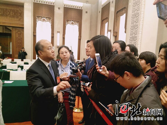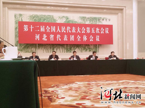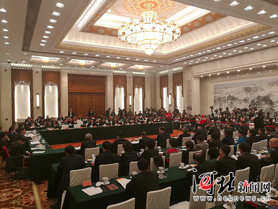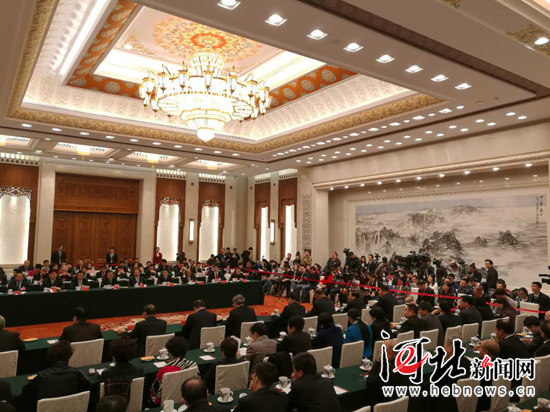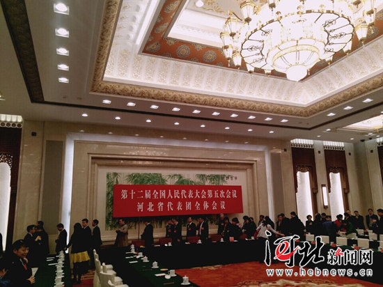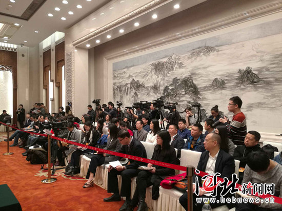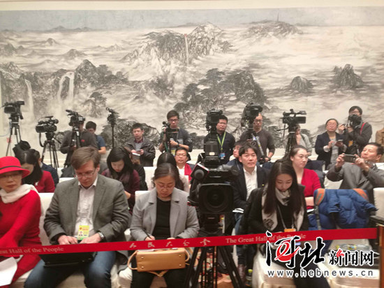 3月7日上午,十二屆全國人大五次會議河北代表團在人民大會堂新聞發(fā)布廳舉行全體會議,并對中外媒體開放。開放日活動現(xiàn)場。