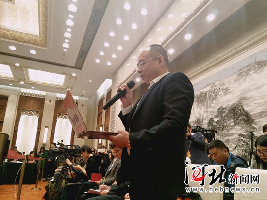 3月7日上午,十二屆全國人大五次會議河北代表團在人民大會堂新聞發(fā)布廳舉行全體會議,并對中外媒體開放。李懷代表在發(fā)言。