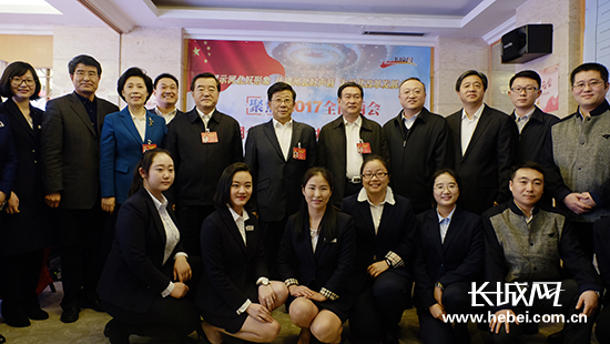 趙克志、張慶偉在2017全國(guó)兩會(huì)長(zhǎng)城網(wǎng)全媒體“中央廚房”指揮中心,看望參加全國(guó)兩會(huì)采訪報(bào)道的新聞工作者,并與大家合影留念。長(zhǎng)城網(wǎng) 姚杰 攝