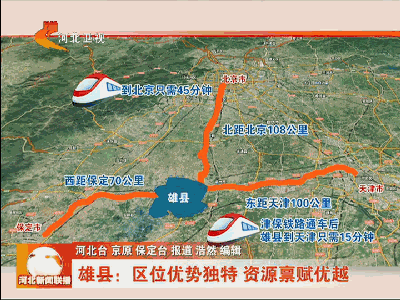雄縣地處冀中平原,總面積524平方公里,北距北京108公里,東距天津100公里,西距保定70公里。地理位置的優(yōu)勢(shì)加上以縣城為中心,四縱五橫的公路交通網(wǎng),雄縣已經(jīng)融入京津城市大交通框架。從雄縣到北京只要45分鐘,津保鐵路通車后,雄縣到天津只需15分鐘。四通八達(dá)的交通網(wǎng)絡(luò)為雄安新區(qū)打造綠色交通體系奠定堅(jiān)實(shí)基礎(chǔ)。