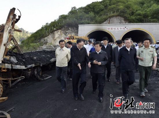 趙克志許勤等在事故現(xiàn)場(chǎng)指導(dǎo)處置工作。 記者郭昭攝