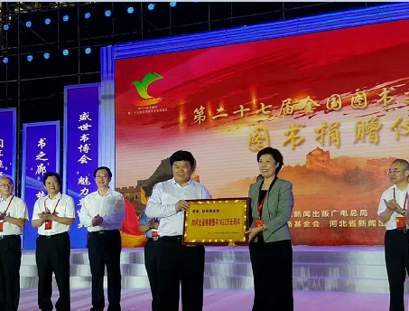 2017年5月31日上午,第二十七屆全國圖書交易博覽會圖書捐贈儀式在廊坊國際會展中心舉行。國家新聞出版廣電總局副局長吳尚之,河北省委常委、宣傳部部長田向利,韜奮基金會理事長聶震寧以及廊坊市人民政府市長陳平,廊坊市委常委、宣傳部長、統(tǒng)戰(zhàn)部長王曦等領(lǐng)導出席此次圖書捐贈儀式。