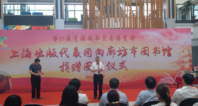捐贈(zèng)儀式在上海出版社經(jīng)營(yíng)管理協(xié)會(huì)理事長(zhǎng)、上海世紀(jì)出版集團(tuán)副總裁李遠(yuǎn)濤先生的致辭中拉開(kāi)帷幕,他表示:“上海出版界希望通過(guò)加強(qiáng)與河北、與廊坊的讀者以及文化出版界同行的交流,更好的將上海文化與燕趙文化結(jié)合起來(lái),強(qiáng)化圖書(shū)的導(dǎo)向作用。”