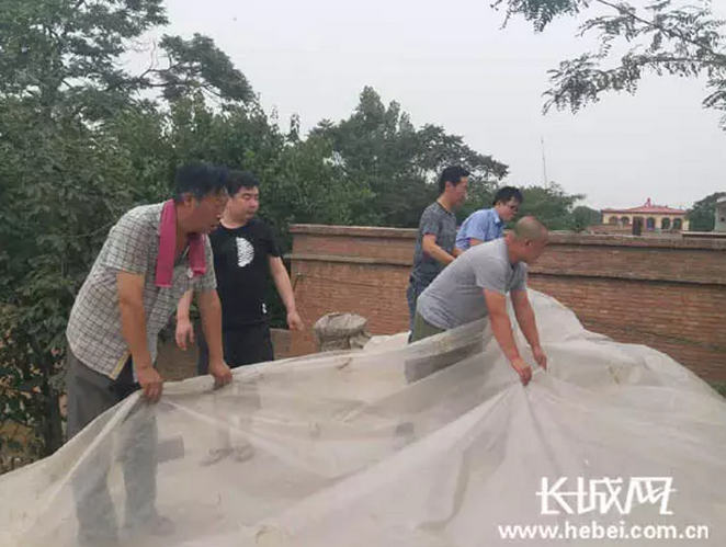 21日下午,記者來到容城縣國土資源局駐容城鎮(zhèn)東牛北莊村工作組的駐地走訪,走到半路,便被告知工作組的隊員們?nèi)椭鍍?nèi)貧困戶龔章林家覆蓋防雨塑料布了。