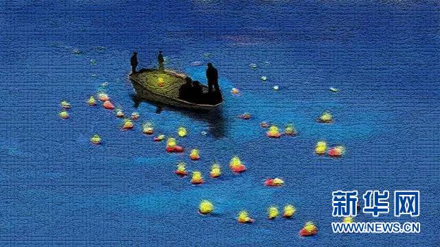 此時(shí)此刻,白洋淀是燈的淀泊,燈的世界。新華網(wǎng)原創(chuàng)手繪