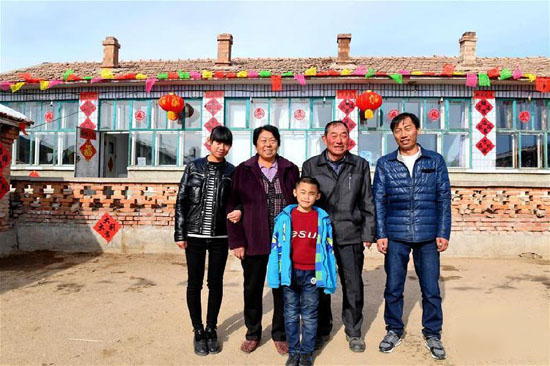 1月24日,張北縣小二臺鎮(zhèn)德勝村村民徐萬(右二)與家人在院子里合影。