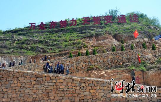 太行山深處,崇山峻嶺間,一條山路如玉帶般蜿蜒向上,通向山坡上的塊塊梯田。涉縣后牧牛池村的100多位留守老人硬是憑著自己的雙手劈山開路、鑿石壘堰,用3個多月時間釬鑿錘擊修出一條6100米的“愚公路”,唱響了蕩氣回腸的“脫貧志氣歌”。如今,“后池百老”又為旅游興村忙碌著,讓這條路一路延伸,越走越寬,越走越美……