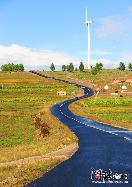 在壩上草原,一條全長132.7公里的雙向兩車道縣級公路,把張北、崇禮、萬全大大小小近20個景點連成了串兒,在不到五年的時間里揚名全國,成為帶動壩上17個鄉(xiāng)鎮(zhèn)、80多個村、10多萬農(nóng)民致富的草原天路……