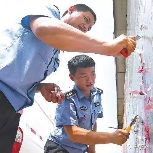 近日,在市二十三小附近,市綜合執(zhí)法局工作人員操作高壓清洗車,手持高壓水槍,伴隨機器的轟鳴聲,只見高壓水槍噴出的高速水流如一把“手術(shù)刀”,幾分鐘的時間,原來布滿墻面的非法小廣告就被清理得一干二凈。