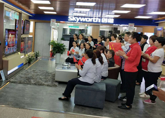 在明珠大廈五樓電視銷售區(qū),這里所有的電視品牌都在播放十九大開幕式,很多顧客和員工都駐足觀看直播。通過觀看開幕式現(xiàn)場直播,大家熱血沸騰,受到了一次深刻的黨性教育和愛國主義教育,感到增強了信心、振奮了人心更加堅定了發(fā)展的決心和信心。大家紛紛表示 ,要在十九大精神的指引下,立足本職、勤奮工作,用優(yōu)質(zhì)的服務(wù)為黨的事業(yè)增光添彩。