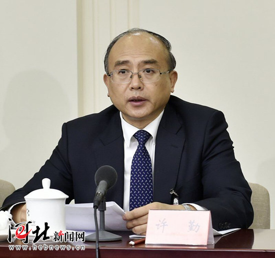 10月24日,出席黨的十九大河北省代表團(tuán)舉行全體會(huì)議。省委副書(shū)記、省長(zhǎng)許勤主持會(huì)議。 記者郭昭攝