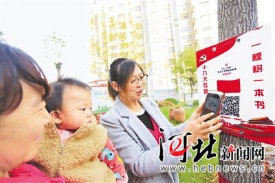 每一棵樹上掛著一個二維碼,掃一掃便可免費閱讀十九大專題書籍——這樣的新鮮事發(fā)生在廊坊市安次區(qū)億合社區(qū)。為了方便居民學(xué)習黨的十九大精神,億合社區(qū)將創(chuàng)新政策理論宣傳與構(gòu)建“全民閱讀推廣服務(wù)體系”相結(jié)合,以小區(qū)里的樹為“載體”建起開放式數(shù)字圖書館,讓十九大精神進家入戶。據(jù)了解,這一做法將逐步在全區(qū)推廣。