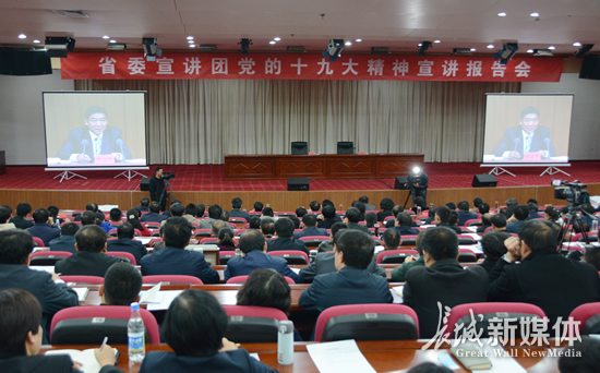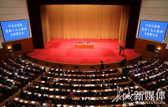 11月7日下午,中央宣講團(tuán)黨的十九大精神宣講報(bào)告會(huì)在石家莊舉行。圖為報(bào)告會(huì)現(xiàn)場(chǎng)。