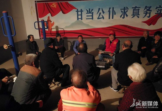 大吳莊社區(qū)組織動(dòng)員黨員們參加晚上的宣講會(huì)。