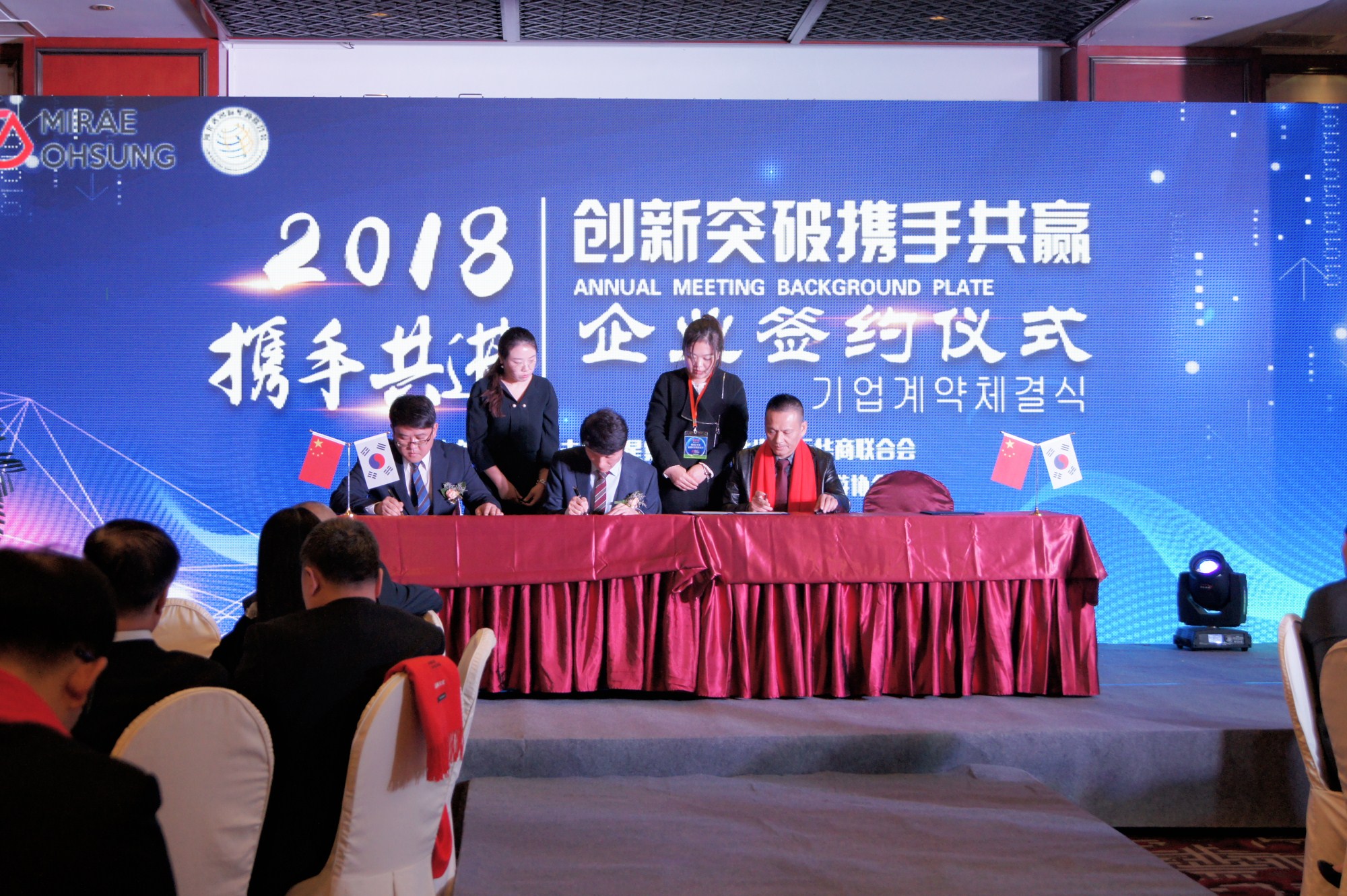 會(huì)上,韓國(guó)未來(lái)五星集團(tuán)公司與河北省國(guó)際華商聯(lián)合會(huì)、廊坊萬(wàn)向城商業(yè)有限管理公司、菲墨斯文化藝術(shù)交流有限公司現(xiàn)場(chǎng)簽約。