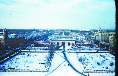 今天的長安街在明清之際并未完全貫通,而是被天安門東西兩側(cè)的長安左門和長安右門分隔開來。八國聯(lián)軍占領(lǐng)北京時(shí),這條路曾經(jīng)一度開放,直到1915年朱啟鈐主持前門地區(qū)的改造才拆除圍墻成為一條通衢大道,當(dāng)然長安左、右兩門仍然保留在原地。照片中1946年的冬天,石獅子都白了頭,長安街上積雪不淺,但仍然人來車往,可見已是一條重要街道。