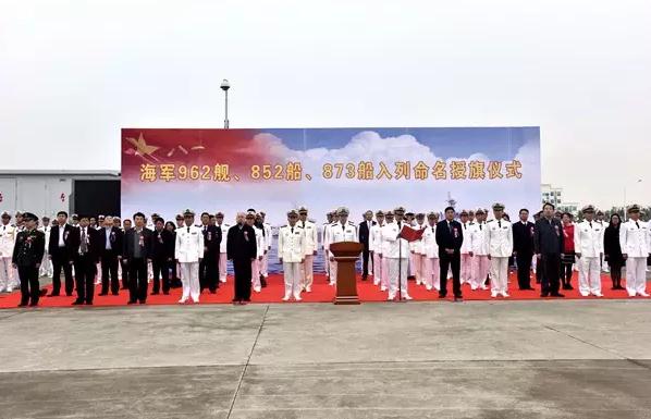 陽光明煦海風習習,威武戰(zhàn)艦滿旗招展。12月26日上午,海軍瀘沽湖艦、海王星船、錢學森船入列命名受旗儀式在南海某軍港碼頭隆重舉行,同時正值南海艦隊某作戰(zhàn)支援艦支隊成立十一周年。鮮艷的八一軍旗,首次在這批新艦船上升起,標志著該批艦船正式加入人民海軍戰(zhàn)斗序列。