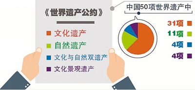 加入《公約》30多年來,中國積極開展遺產(chǎn)申報(bào)和保護(hù),已成為世界遺產(chǎn)數(shù)量增長(zhǎng)最快的國家之一。從2003年起,中國連續(xù)14年每年都有項(xiàng)目成功入選世界遺產(chǎn)名錄。隨著今年又有2個(gè)項(xiàng)目申遺成功,中國的世界遺產(chǎn)數(shù)量增至50項(xiàng),其中,世界文化遺產(chǎn)35項(xiàng)(其中4項(xiàng)為文化景觀遺產(chǎn)),世界自然遺產(chǎn)11項(xiàng),文化與自然雙重遺產(chǎn)4項(xiàng)。