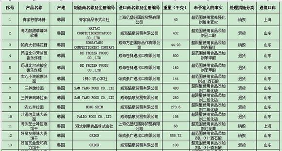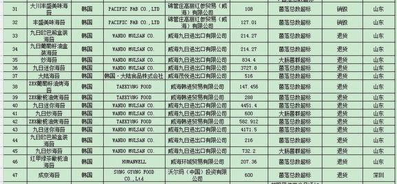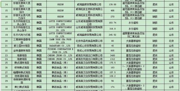 名單還顯示,24批未予準(zhǔn)入的韓國食品存在菌落總數(shù)超標(biāo)的情況。其中由沃爾瑪(中國)投資有限公司進口的1批成京海苔和1批花泉山藥藜麥米南瓜玉米粉;由山東神威海韓進貿(mào)易有限公司進口的1批ZEK葡萄籽油烤海苔和2批ZEK橄欖油烤海苔。