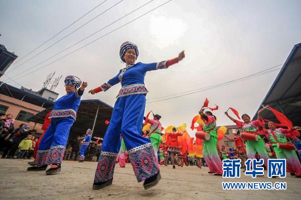 2月15日,在湖南省湘西土家族苗族自治州龍山縣靛房鎮(zhèn)燎原社區(qū),人們載歌載舞,歡歡喜喜迎新春