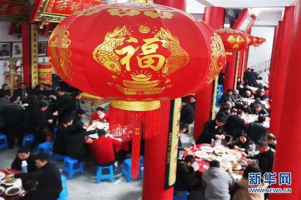 2月17日,在浙江省溫州市蒼南縣蘇家店村,村民歡聚一堂品佳肴、話家常。大年初二,浙江省溫州市蒼南縣蘇家店村村民在村文化活動(dòng)中心團(tuán)圓聚餐,共敘鄰里情,歡度新春佳節(jié)
