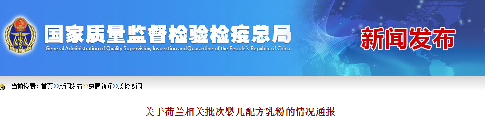 近日,國家質(zhì)檢總局網(wǎng)站也發(fā)布公告稱:歐盟食品飼料快速預(yù)警系統(tǒng)通報,一批由荷蘭企業(yè)生產(chǎn)的嬰幼兒配方奶粉疑似遭到致病菌阪崎腸桿菌的污染。相關(guān)產(chǎn)品已出口到中國、越南、沙特阿拉伯等國家。