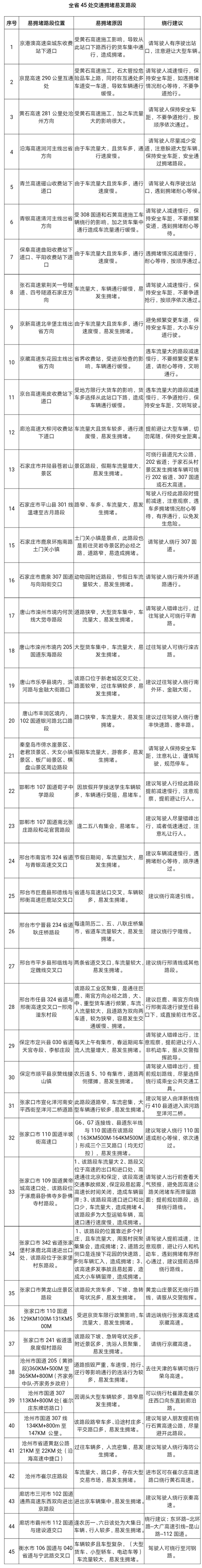 河北公布2019年春運(yùn)交通事故多發(fā)路段和易擁堵路段