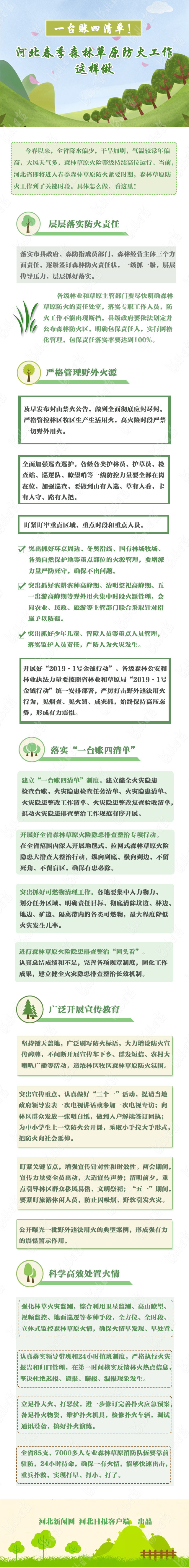 今春以來,全省降水偏少,干旱加劇,氣溫較常年偏高,大風天氣多,森林草原火險等級持續(xù)高位運行。當前,河北省即將進入春季森林草原防火緊要時期,森林草原防火工作到了關鍵時段。具體怎么做,看這里!