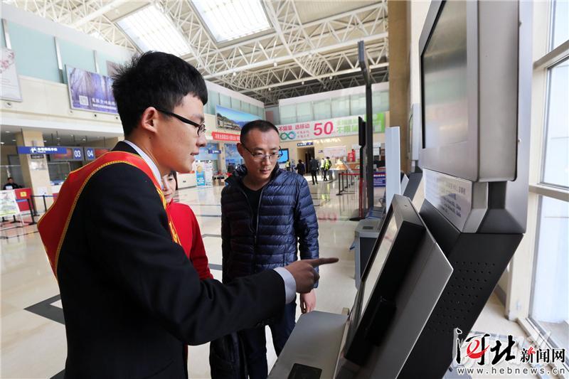 3月31日,張家口寧遠機場正式復航。圖為機場工作人員指導旅客辦理登記手續(xù)。