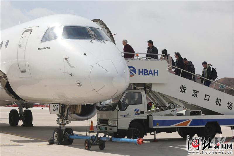 當日上午,由河北航空執(zhí)行的石家莊-張家口NS3201航班首航儀式在張家口寧遠機場舉行。上午11時29分,隨著河北航空公司E190飛機落地,標志著張家口寧遠機場正式復航。
