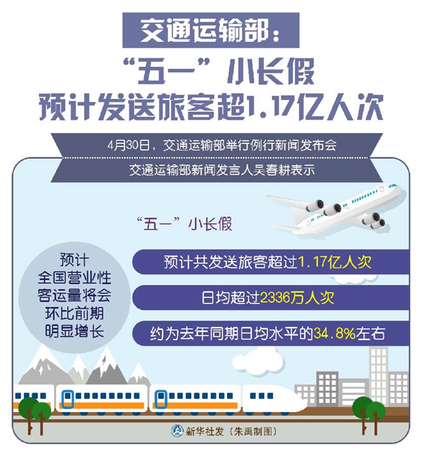 吳春耕介紹,預(yù)計“五一”期間,全國營業(yè)性客運(yùn)量環(huán)比將出現(xiàn)明顯增長,預(yù)計共發(fā)送旅客超過1.17億人次,日均超過2336萬人次,約為去年同期日均水平的34.8%左右。