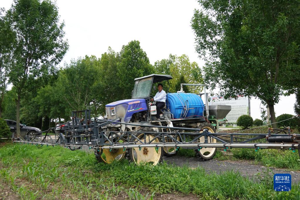 7月7日,安徽省蚌埠市懷遠(yuǎn)縣種糧大戶尚躍駕駛大型植保機(jī)在田間噴灑農(nóng)藥。新華社發(fā)
