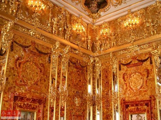 其中最耀眼的當(dāng)屬琥珀宮。這座由黃金和琥珀裝飾成的建筑是18世紀(jì)腓特烈·威廉一世送給彼得一世的禮物,位于俄羅斯圣彼得堡附近凱瑟琳宮內(nèi)。其造價(jià)比黃金還要昂貴。