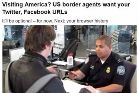 關(guān)于美國(guó)海關(guān)將可能查個(gè)人社交媒體信息的報(bào)道。(美國(guó)《僑報(bào)》)