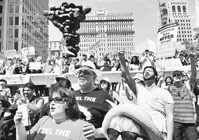 24日在費(fèi)城參加示威活動的索菲亞對美國兩黨當(dāng)前相互攻訐的局面感到十分遺憾,她對本報記者說:“民主黨與共和黨應(yīng)該合作,但他們除了相互攻擊,什么都不做。”