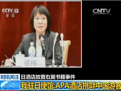 中國駐日本大使館新聞發(fā)言人張梅25號在例行記者會上強調(diào):日本APA酒店在客房內(nèi)放置否認南京大屠殺書籍一事的實質(zhì)是,“日本國內(nèi)一些勢力始終不愿意正視歷史”,并表示“絕不容忍歪曲歷史、傷害中國人民感情的公然挑釁行為”,敦促日方以正確的歷史觀教育國民,以實際行動取信于亞洲鄰國和國際社會。