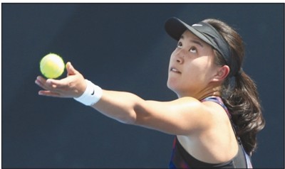 1月11日,中國(guó)選手朱琳在澳網(wǎng)資格賽首輪比賽中。