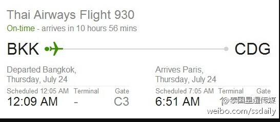 英拉預(yù)定了泰航航班從曼谷飛往巴黎