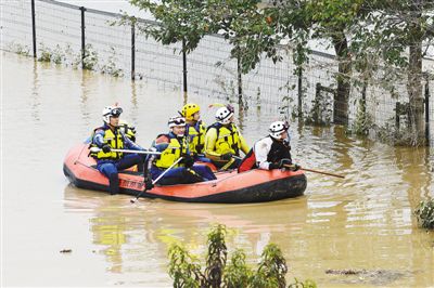 10月14日,在日本長野市,當?shù)鼐仍藛T展開搜救工作。 |