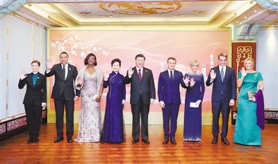 晚6時(shí)許,法國總統(tǒng)馬克龍夫婦、牙買加總理霍爾尼斯夫婦、希臘總理米佐塔基斯夫婦、塞爾維亞總理布爾納比奇等外方貴賓陸續(xù)抵達(dá)。習(xí)近平和彭麗媛同他們親切交流并合影留念。