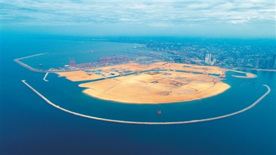 2019年11月28日無人機拍攝的斯里蘭卡科倫坡港口城項目全景??苽惼赂劭诔鞘撬估锾m卡與中國的“一帶一路”重點合作項目。 ?。ㄐ氯A社發(fā))