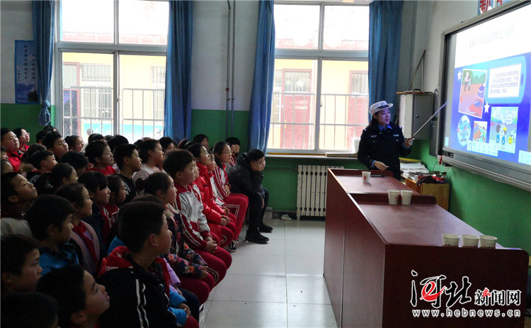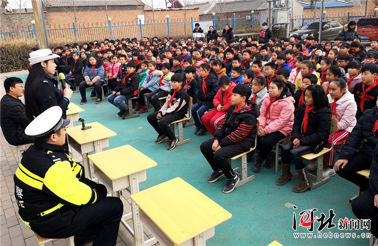 近日,香河縣公安交通警察大隊開展“為全縣農(nóng)村小學(xué)生上交通安全課”活動。圖為香河交警為農(nóng)村學(xué)生講解交通安全知識。