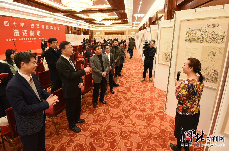 參加活動(dòng)的觀眾在參觀“砥礪奮進(jìn)四十年改革開(kāi)放再出發(fā)——漫話廊坊”活動(dòng)創(chuàng)作作品,感受廊坊改革開(kāi)放四十年巨變。 劉向攝