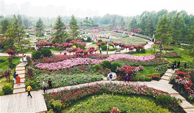 走出喧囂,靜謐處也有花香。位于藝術(shù)大道與和平路交口的“前程似錦”花壇和呂端園的“花開盛世”花壇以月季為主景,花團(tuán)錦簇;文化公園以“自然循環(huán),低碳生活”為設(shè)計(jì)理念,建設(shè)以月季為主題,老少皆宜的園中園。