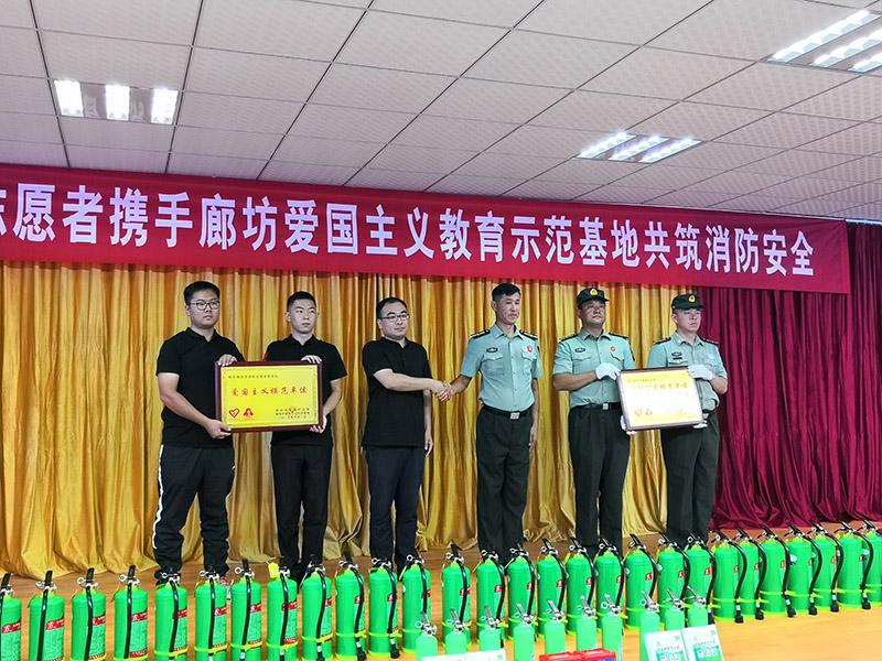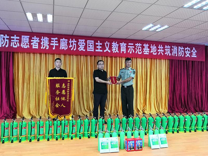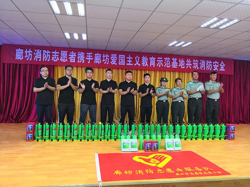 8月1日上午,廊坊市愛國主義教育示范基地舉行廊坊消防志愿者服務隊捐贈消防器材活動。