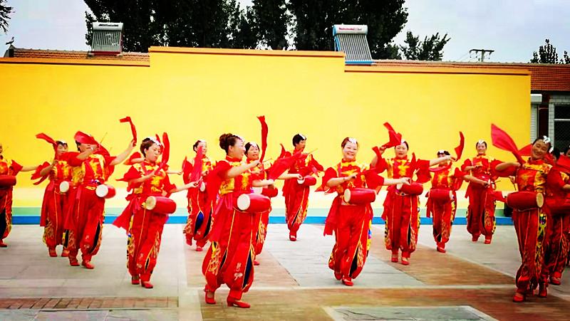 圖為固安縣郭翟村村民載歌載舞。