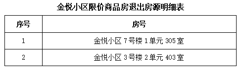 中號(hào)家庭自愿放棄購買退出的房源共計(jì)2套,均為金悅小區(qū)限價(jià)商品房。